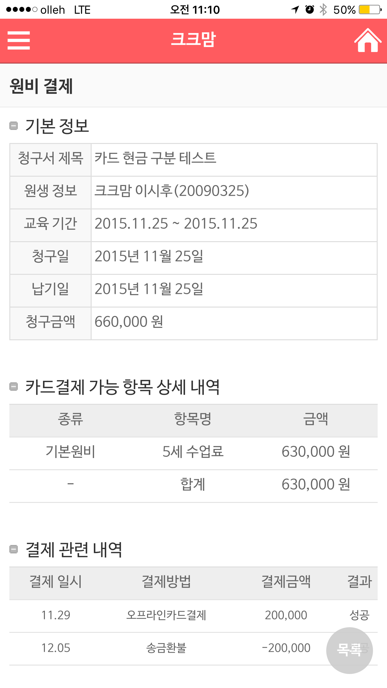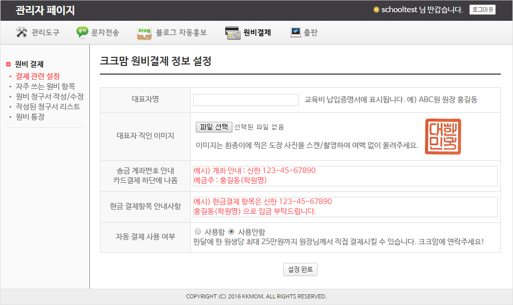 수행성 경비나 교재비 등은 카드결제를 안되게 할 수 있습니다.